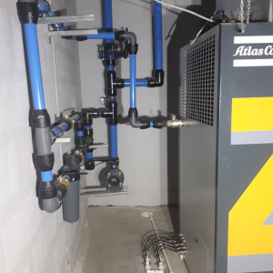 * АО «Атлас Копко» г. Химки – монтаж пневмосистемы сервисного центра протяженностью более 100 метров на базе трубопровода AirNet